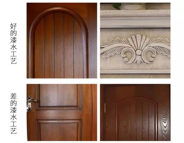 漆水完全不一樣,我們是嚴(yán)格按照美式涂裝的做法:木磨--灰磨--刷封固底漆--噴底色--噴底漆--油磨--搽格里斯--打毛刷--噴底漆--油磨--網(wǎng)紗--面修色漆--面漆,而市場(chǎng)上的貼板門(mén),大多數(shù)的漆水只做了二底一面,甚至還有做一底一面的,少做一次,材料少一次,工錢(qián)少一次。漆工材料及工錢(qián)高:60-120元。